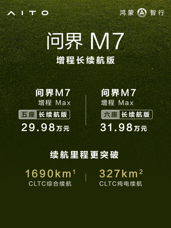 全新问界M7增程长续航版正式上市 售价29.98万元起