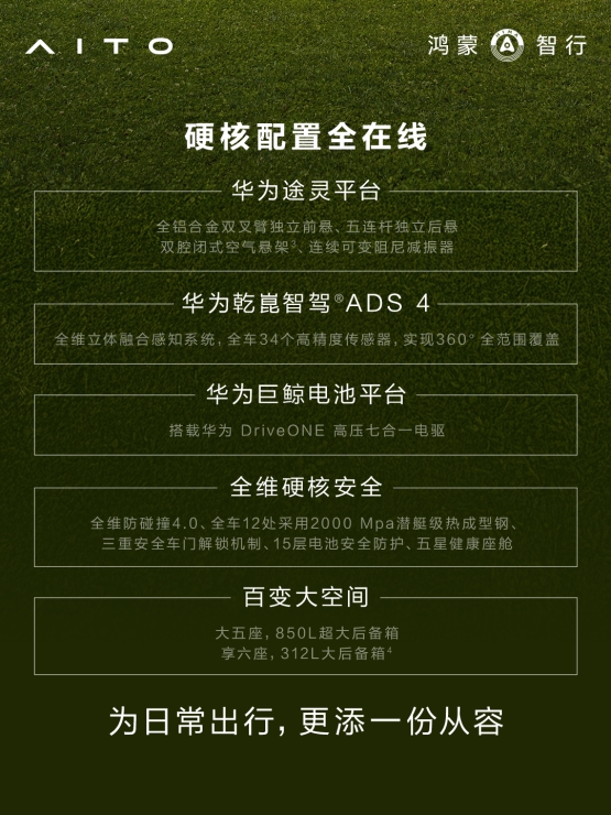 此次全新问界M7增程长续航版的上市,以超长续航为突破口,进一步完善了产品矩阵,为用户提供了更具价值的智慧出行选择。未来,被誉为“国民SUV幸福旗舰”的问界M7将持续迭代进化,以更卓越的产品力满足家庭用户的多元化需求,成为更多家庭的出行优选。